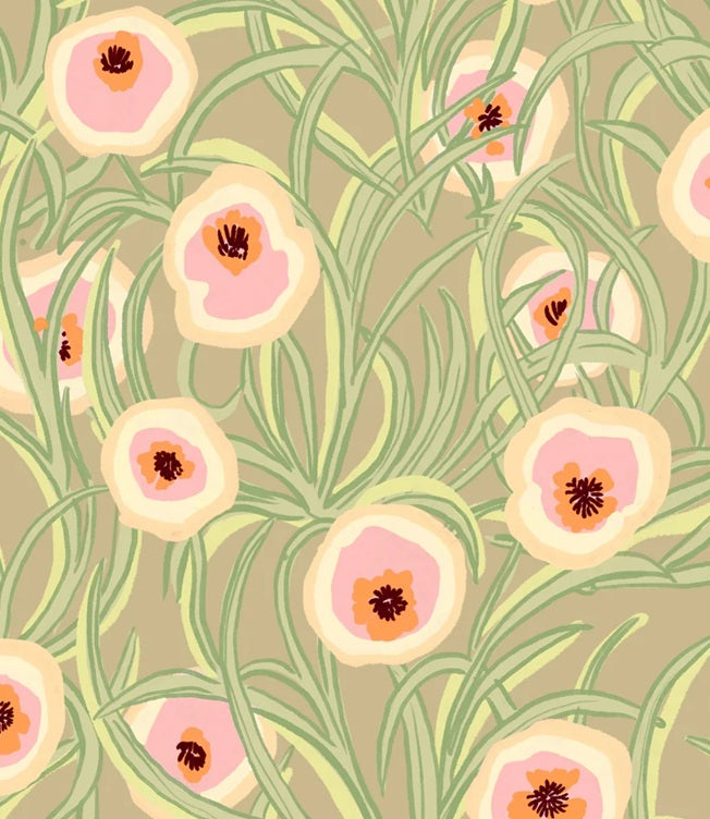 Entrelacs Argile brengt bij iedereen een beetje vrolijkheid in elke ruimte! De Japanse bloemen in verschillende roze tinten en de groene bladeren komen prachtig uit op de zachtgroene achtergrond. Een heel mooi bloemenbehang dat eigenlijk in elke ruimte past!