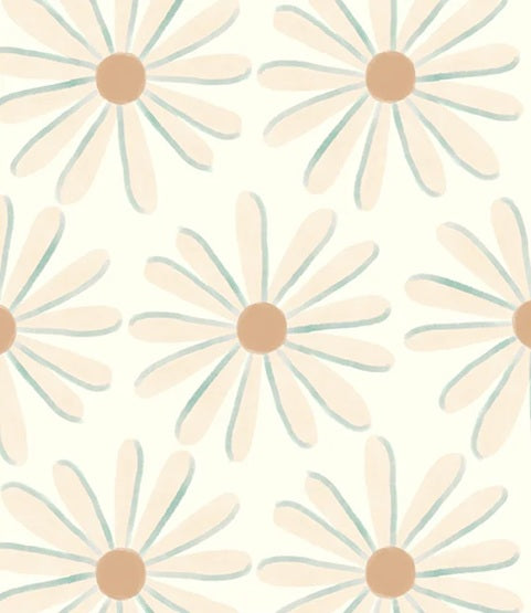 Een muur vol met madeliefjes! Passionnément van Season Paper is een heerlijk vrolijk bloemen behang met madeliefjes. De offwhite bloemen met hun beige en blauwe details komen heel mooi uit op de witte achtergrond.