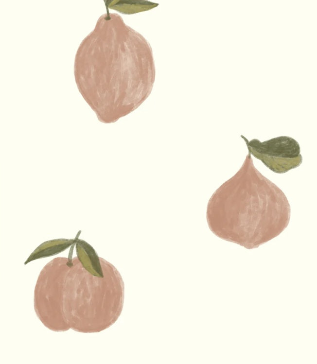 Appels, peren, vijgen, je vindt ze allemaal op dit mooie fruit behang van Season Paper! De rustige beige tinten met groene details geven een rustige en relaxte sfeer met toch die speelse touch door de getekende fruitsoorten.