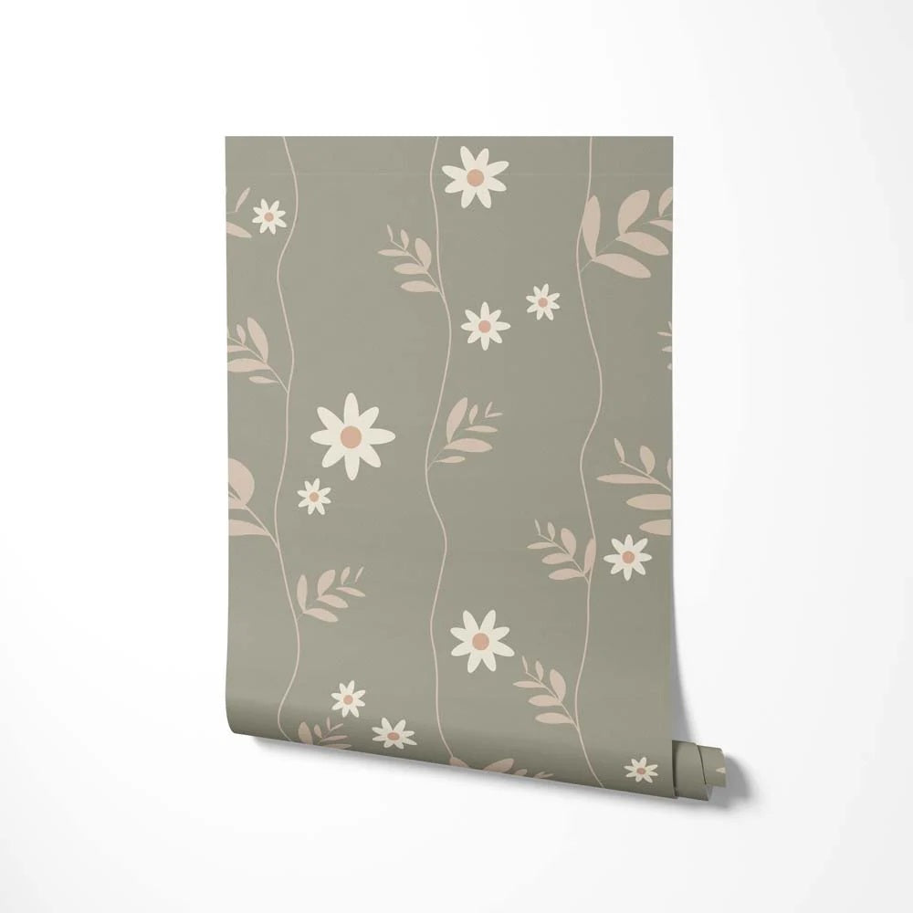 Daisy is een vrolijk bloemenbehang voor de kinderkamer met een warme en rustige uitstraling.