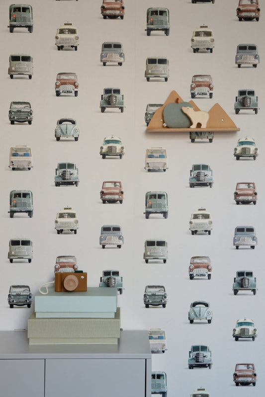 Studio Ditte Wallpaper Cars - Light Gray with Silver