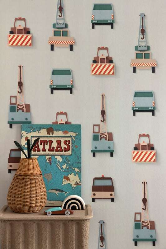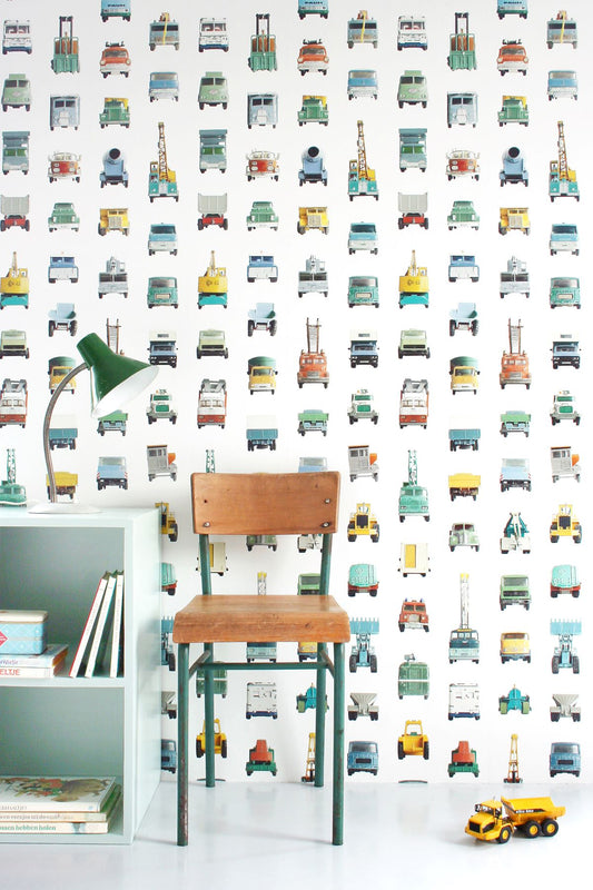 Studio Ditte Wallpaper Work Trucks - Light Gray