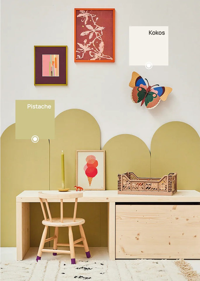 De kleuren zijn een perfecte aanvulling op de behangcollecties van Bibelotte, maar ze kunnen ook absoluut gecombineerd worden met andere behangprints.