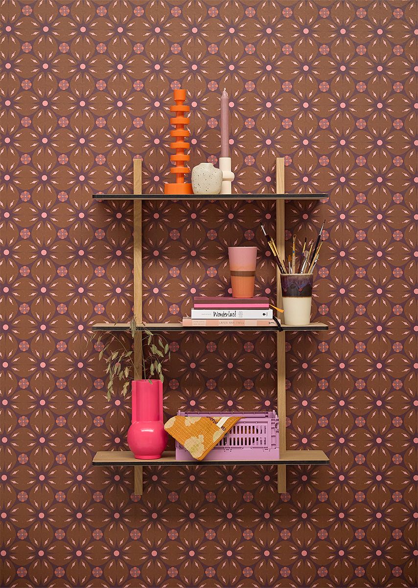 The Porto wallpaper from Bibelotte is available in 4 colours: purple, salmon, chestnut and sea.