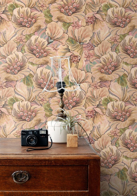 ESTAhome Wallpaper Floral Pattern - Light Brown Beige