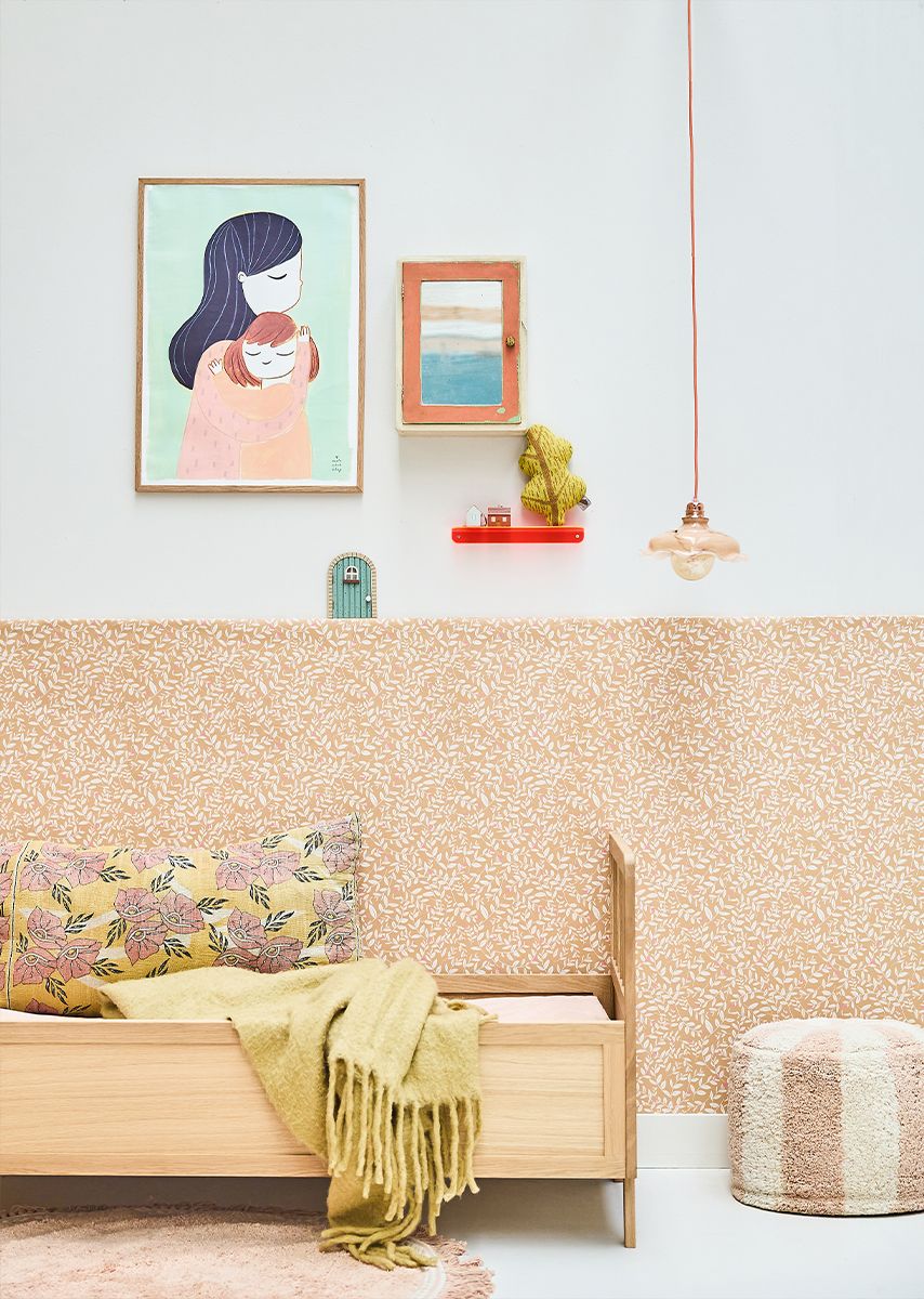 On the ochre yellow background you will find white twigs and flowers in a subtle pink hue. Perfect to give the room a natural atmosphere!