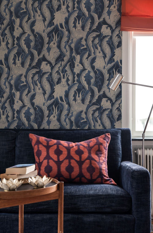 Långelid/von Brömssen Wallpaper Hares in Hiding - Dark Denim