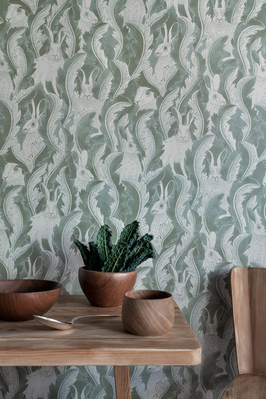 Långelid/von Brömssen Wallpaper Hares in Hiding - Aloe