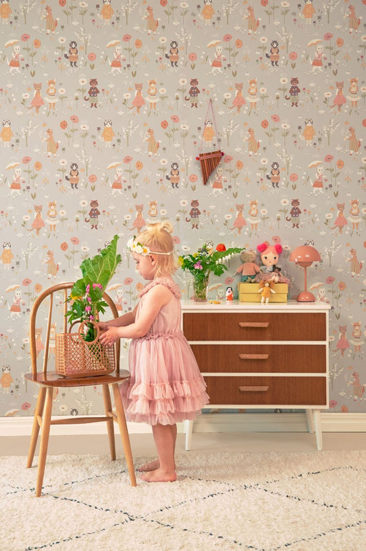 Majvillan Wallpaper Garden Party - Dusty Blush Pink