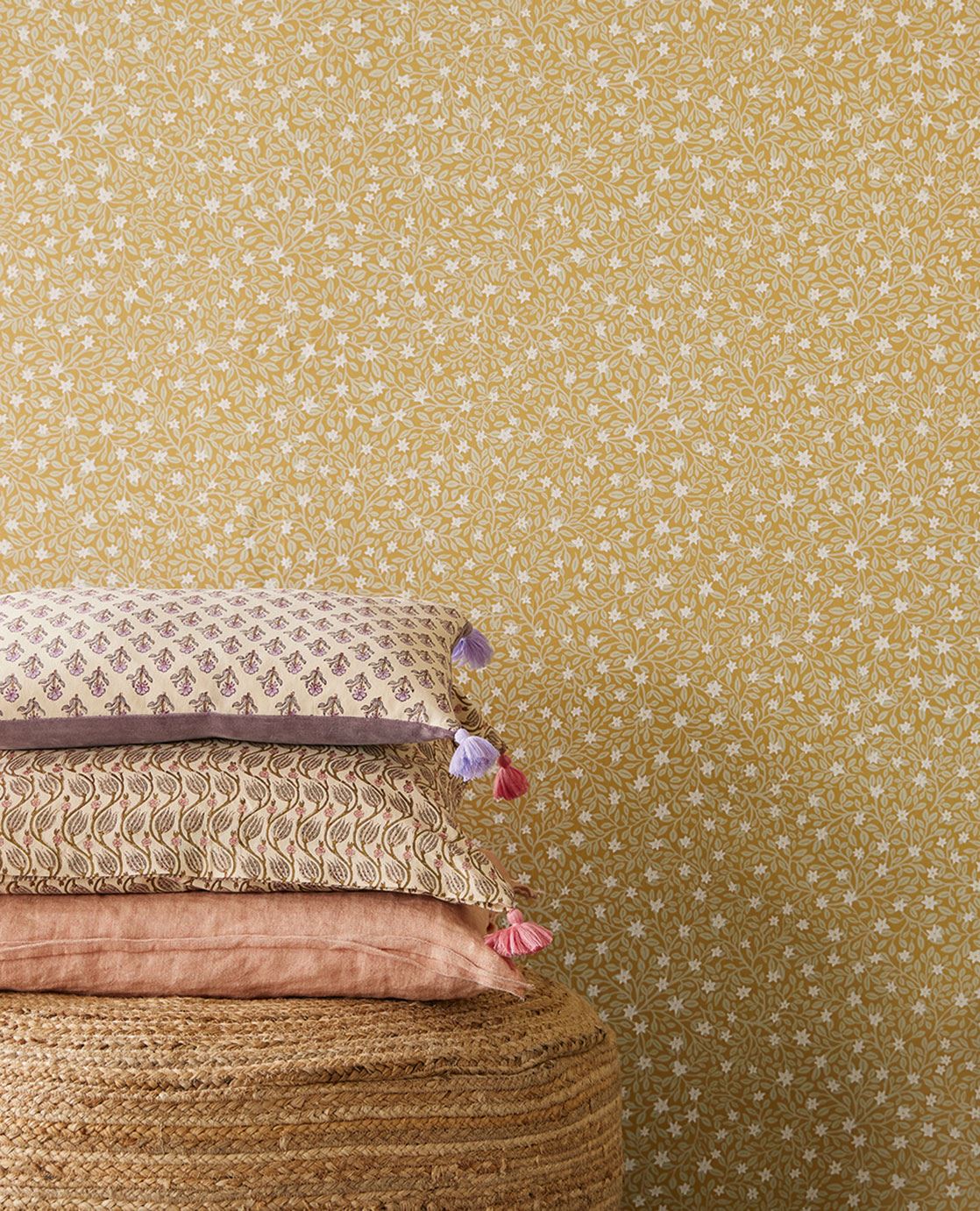 This floral wallpaper from Eijffinger from the Posy collection is available in 7 colors: beige, light blue, pink, ocher, green, dark green and dark blue