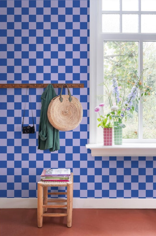 ESTAhome Wallpaper Checked - Lilac Royal Blue