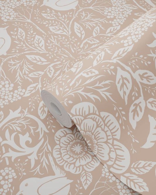 ESTAhome Behang Bloemen en Vogels Art Nouveau - Nude