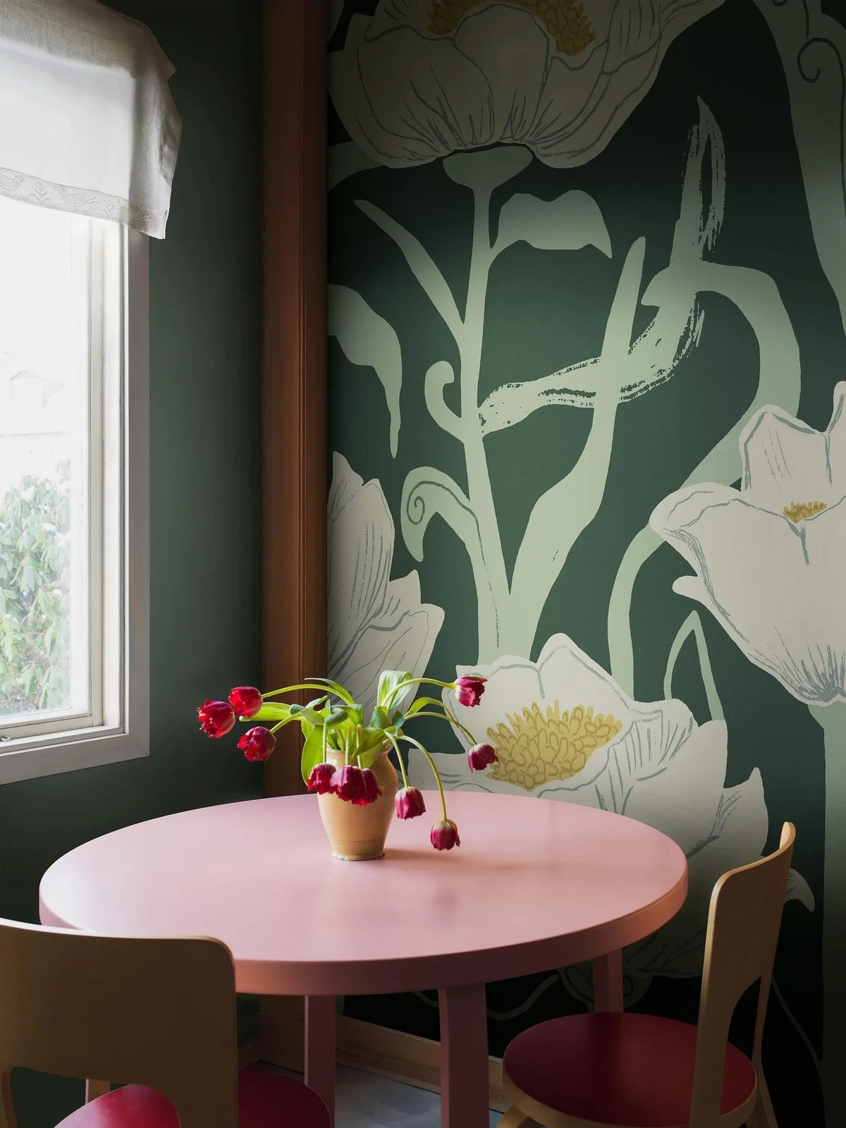 Kenmerkend voor het Boråstapeter behang, zijn de prints waarin bloemen en de natuur centraal staan. Grote bloemen, kleine bloemetjes, eekhoorntjes, konijnen en vossen, voor de kinderkamer helemaal geweldig natuurlijk!